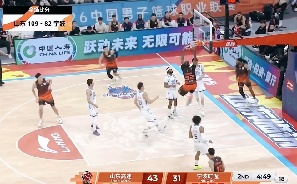 整个上半场,山东男篮打行云流水,无论是内线突破,还是外线投射。而宁波男篮同样不甘示弱,在辛普森的带领下,球队的反击非常犀利,始终没有让分差进一步拉大。